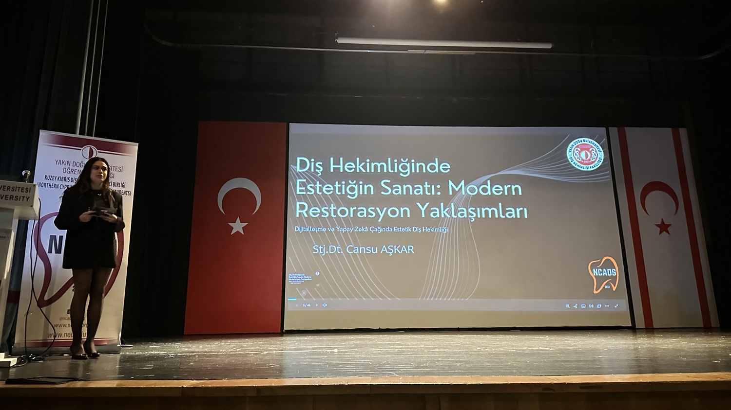 The symposium focused on scientific sessions that presented up-to-date knowledge across digital dentistry, aesthetic restorations, implant management, and emerging artificial intelligence applications. The program opened with remarks by Vice Rector Prof. Dr. Umut Aksoy, President of the Cyprus Turkish Dental Association Dr. Turhan Ulutekin, Vice Dean Assoc. Prof. Dr. Özay Önoral, and NCADS President Intern Dentist Berkay Hamurcu, each emphasizing the importance of integrating scientific innovation, professional ethics, and student-centered learning in contemporary dental education.