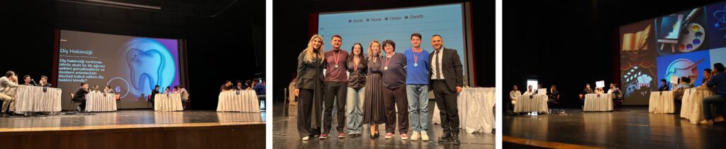 The atmosphere further heightened during the General Knowledge Quiz, in which students competed on behalf of their Collegium teams. Collegium Auris secured first place, supported by an energetic and engaging session moderated by Assoc. Prof. Dilan Kırmızı and Assoc. Prof. Özay Önöral. Their dynamic presentation style contributed significantly to the lively environment, and the event attracted not only dentistry students but also administrators, faculty members, and students from other faculties, creating a vibrant interfaculty gathering.