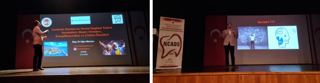Assoc. Prof. Dr. Uğur Mercan, an Oral and Maxillofacial Surgery specialist practicing in the private sector in Türkiye, delivered an insightful presentation on implant treatment approaches in geriatric patients. Emphasizing the global rise in the elderly population, he highlighted the growing responsibility of today’s clinicians to be fully equipped not only with the appropriate treatment options but also with effective communication strategies and patient-centered approaches tailored to older adults. Dr. Mercan outlined the unique clinical considerations of geriatric implant dentistry—including systemic health evaluations, medication interactions, age-related anatomical changes, and functional expectations—and discussed how these factors influence treatment planning. He presented a range of implant-supported prosthetic options suitable for this demographic, addressing their indications, expected success rates, and evidence-based risk mitigation strategies.